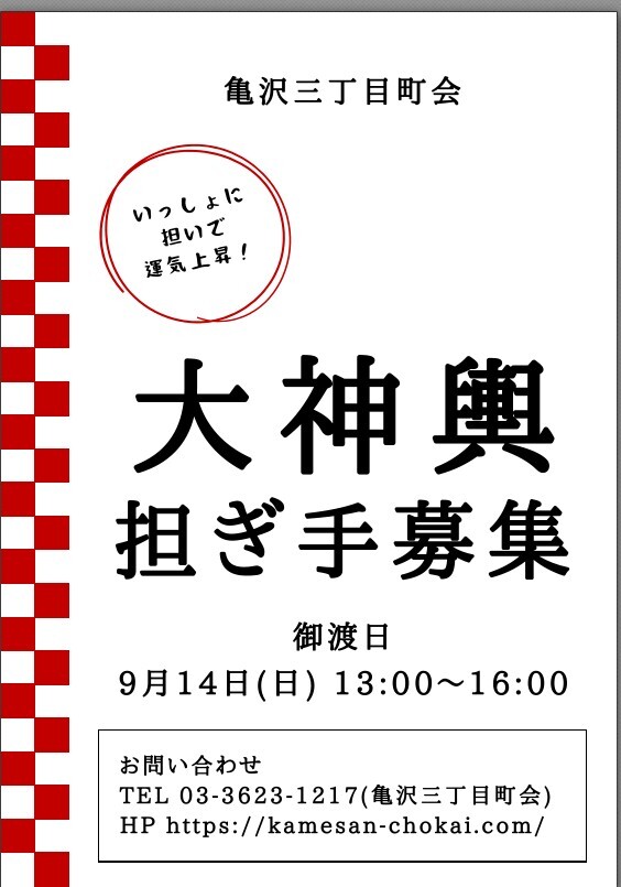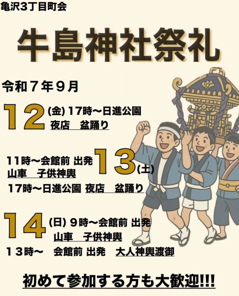 墨田区亀沢三丁目町会 牛嶋神社祭礼 のお知らせ ・・・たくさんのご参加ありがとございました。