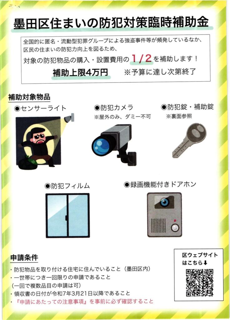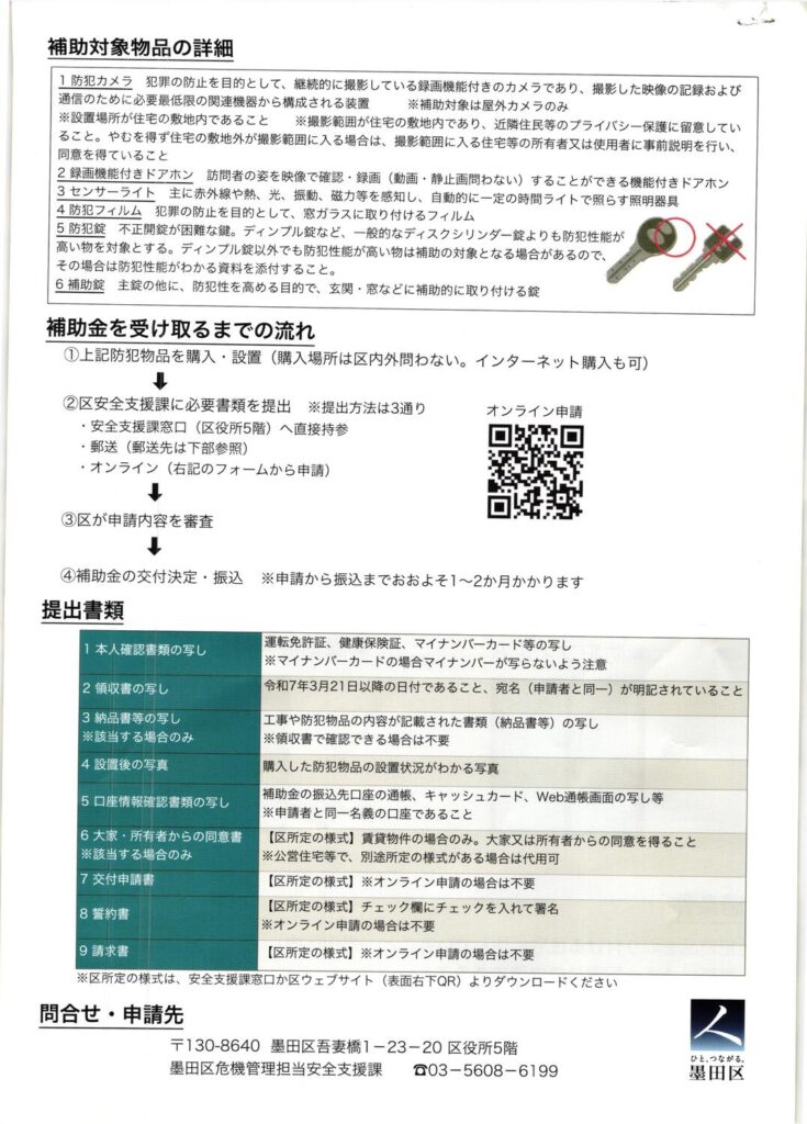 墨田区住まいの防犯対策臨時補助金