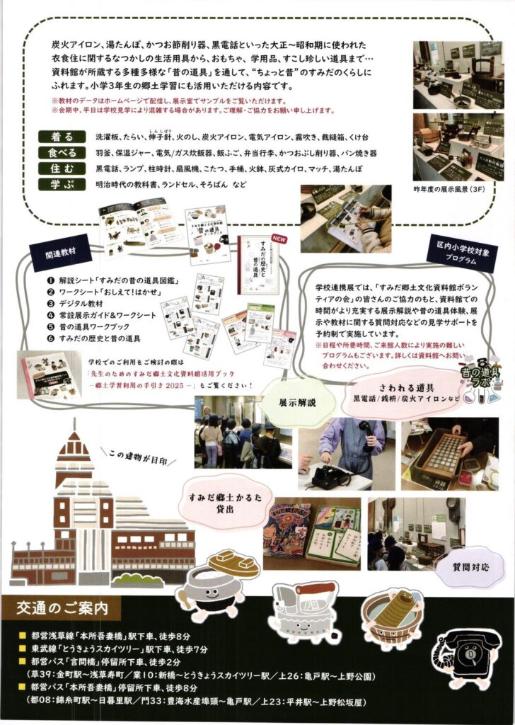 すみだ郷土文化資料館 学校連携店 すみだの昔のくらしと道具